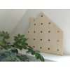 - 1 kus děrovaného panelu ve tvaru domku s oknem a komínem (pegboard)